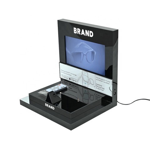 قمة كونترتوب النظارات الشمسية الاكريليك عرض موقف مع شاشة Lcd الذكية النظارات السمعية عرض موقف