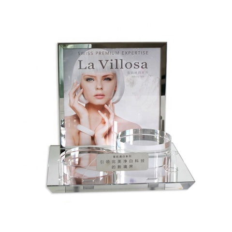 Espositore in acrilico con specchio d'argento di lusso con Design personalizzato da banco per cosmetici con luce a LED