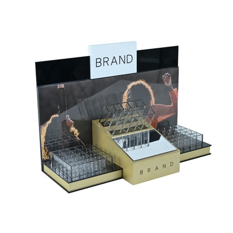 APEX personalizzabile in metallo acrilico espositore a forma di L per la cura della pelle profumo e trucco superficie lucidata per uso negozio