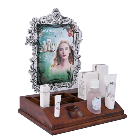 Apex sang trọng Acrylic gỗ mỹ phẩm hiển thị đứng với thiết kế hiện đại Kệ di động cho các cửa hàng mỹ phẩm